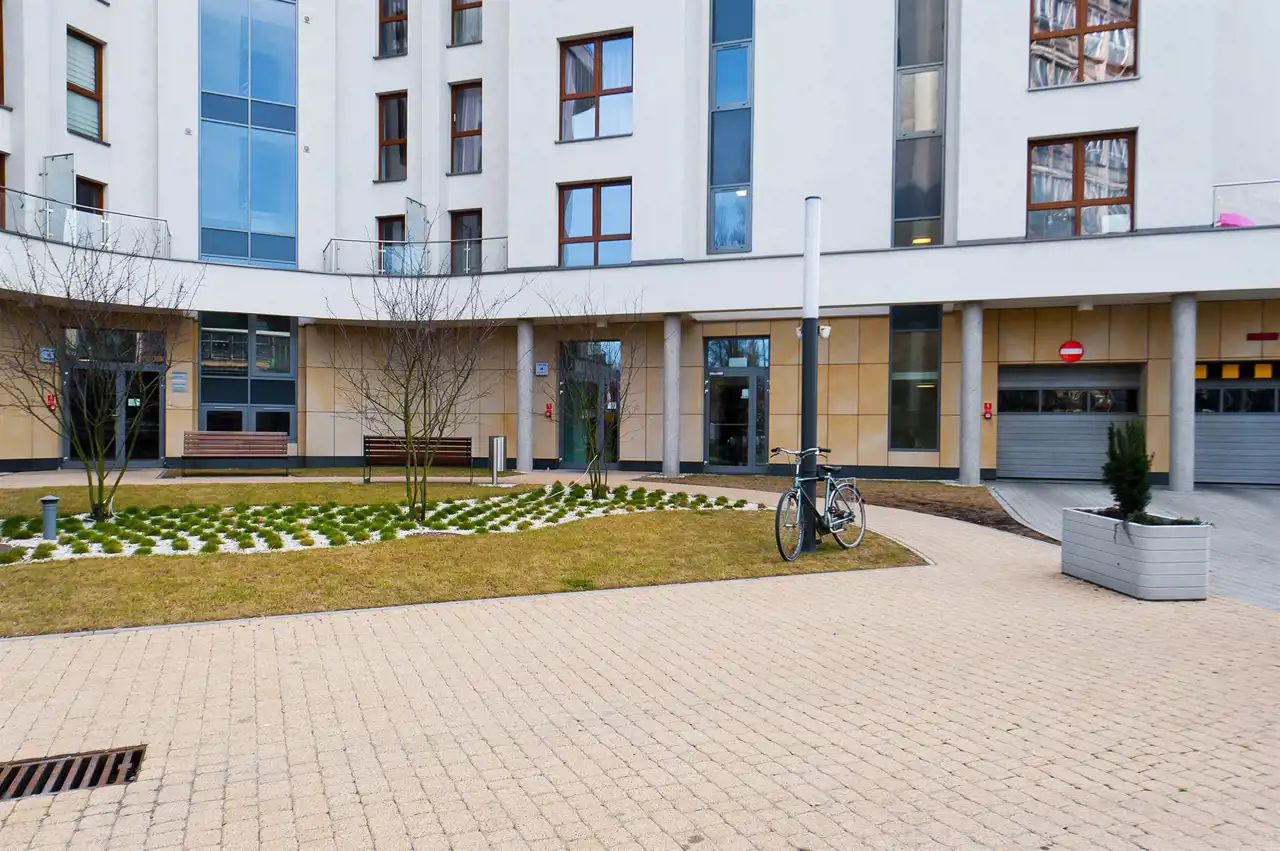 Budynek klasy apartamentowca, bardzo zadbany, wokół sporo zieleni, sklepy punkty usługowe, przystanki komunikacji miejskiej,
