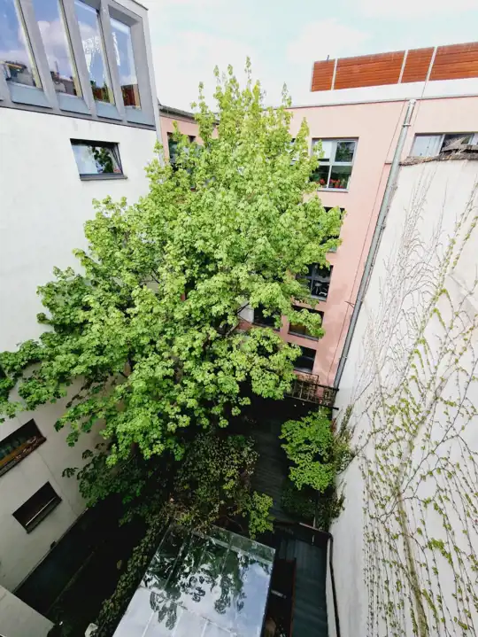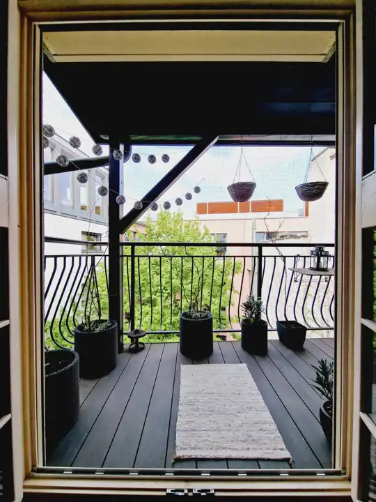 PRZESTRONNY TARAS Z WIDOKIEM NA OGRÓD PRZY KAMIENICY