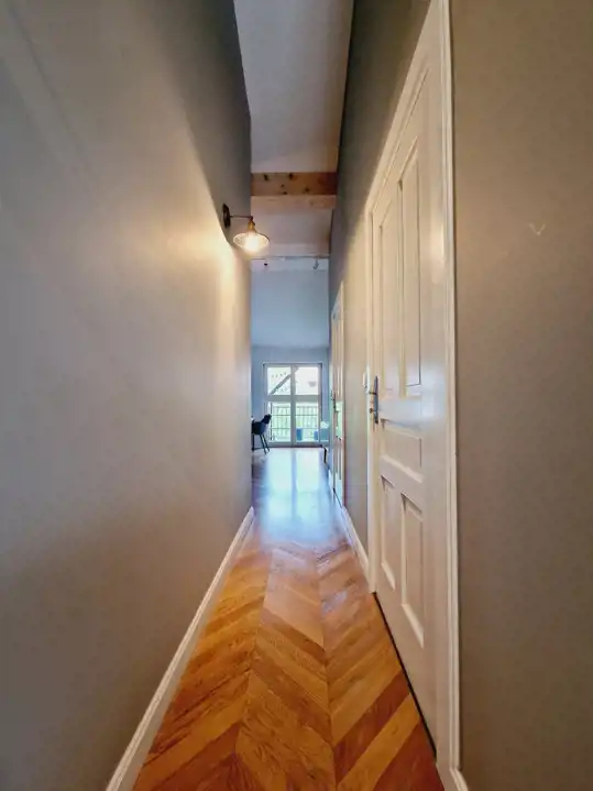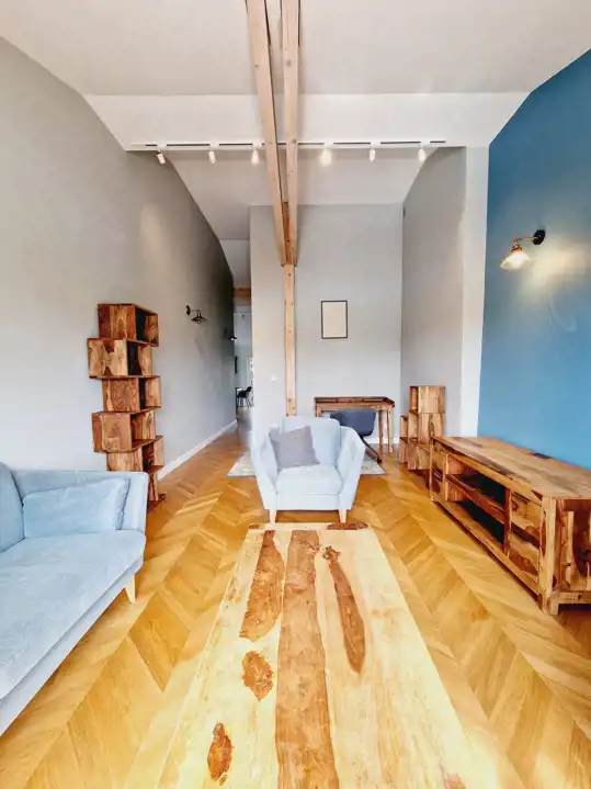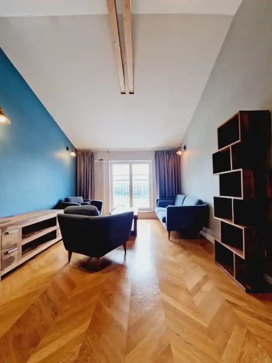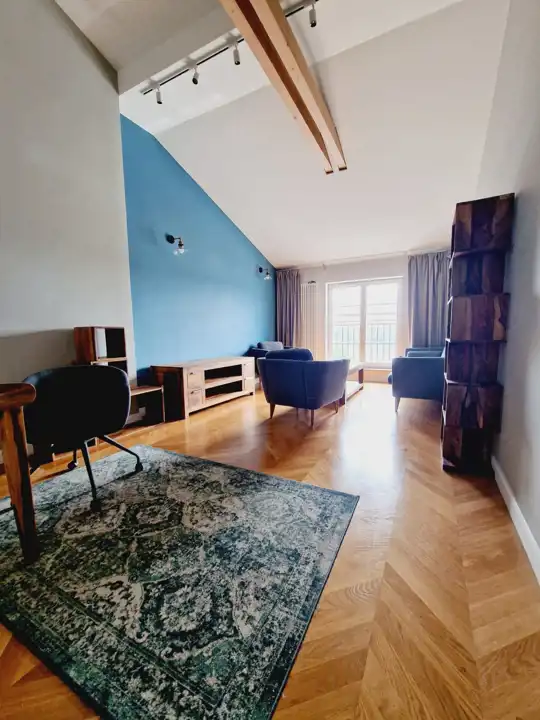 Chcemy państwu zaprezentować do wynajmu piękny, wyremontowany i w wysokim standardzie apartament (63,50 m2) w samym sercu dzielnicy Stare Miasto (ul. Powiśle). Apartament mieści się na czwartym piętrze w czteropiętowej kamienicy. Widok z apartamentu roztacza się na zakole Wisły oraz na ogród zza kamienicą. Apartament w budynku ulokowany dwustronnie. Ekspozycja okien względem stron świata: południe oraz północny zachód.