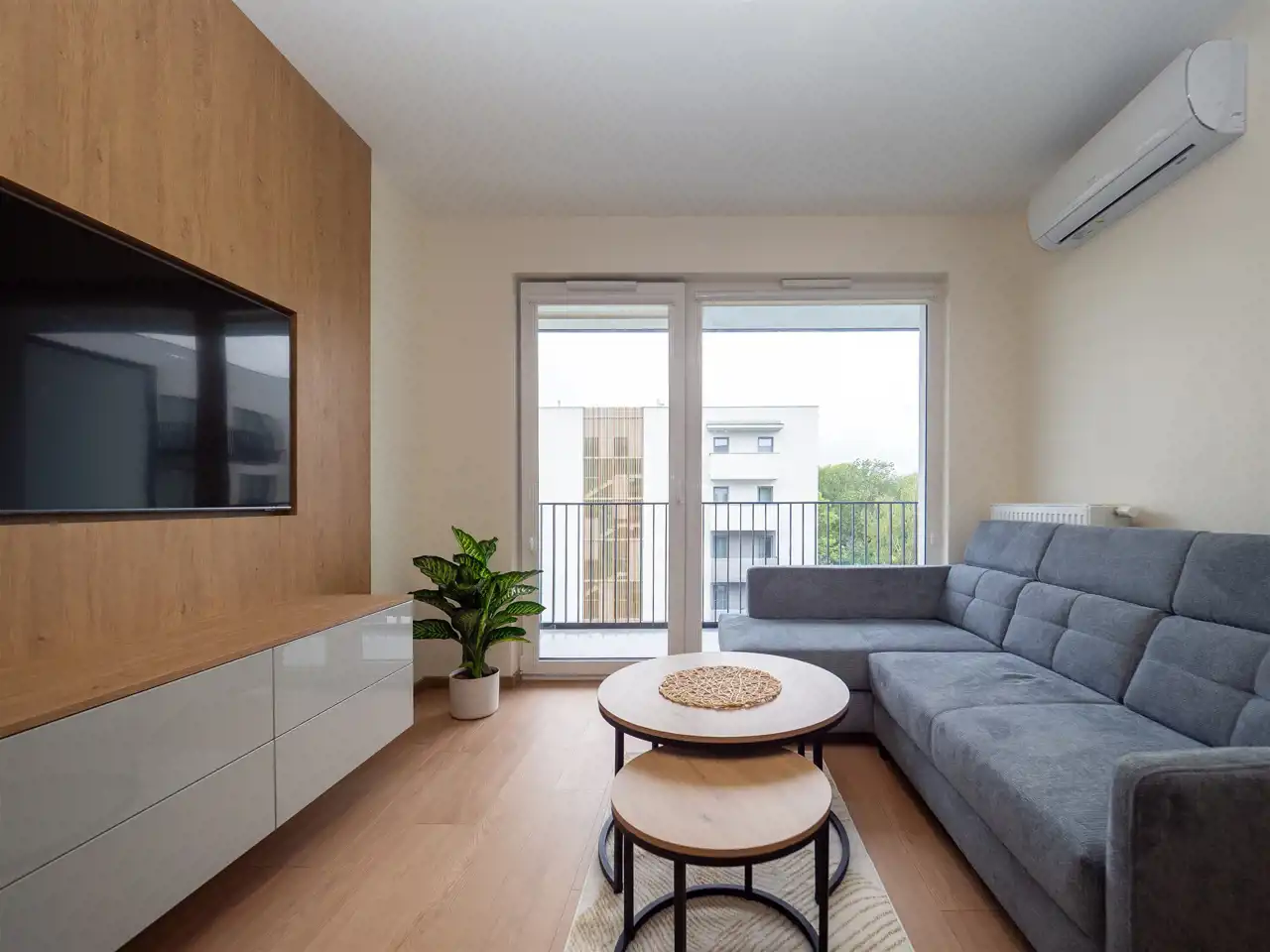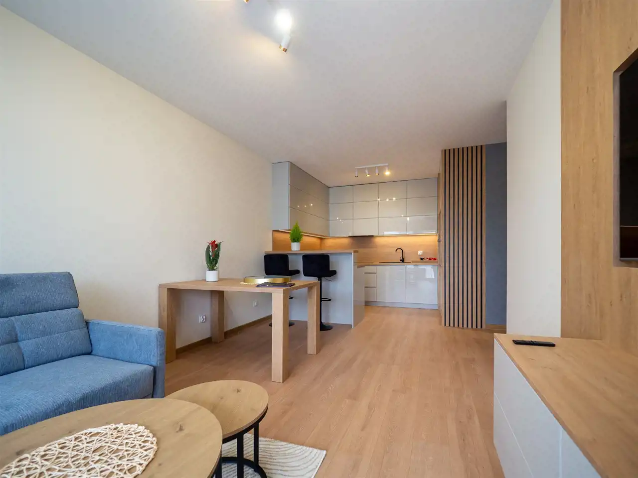 - Salon: sofa, stół, telewizor
