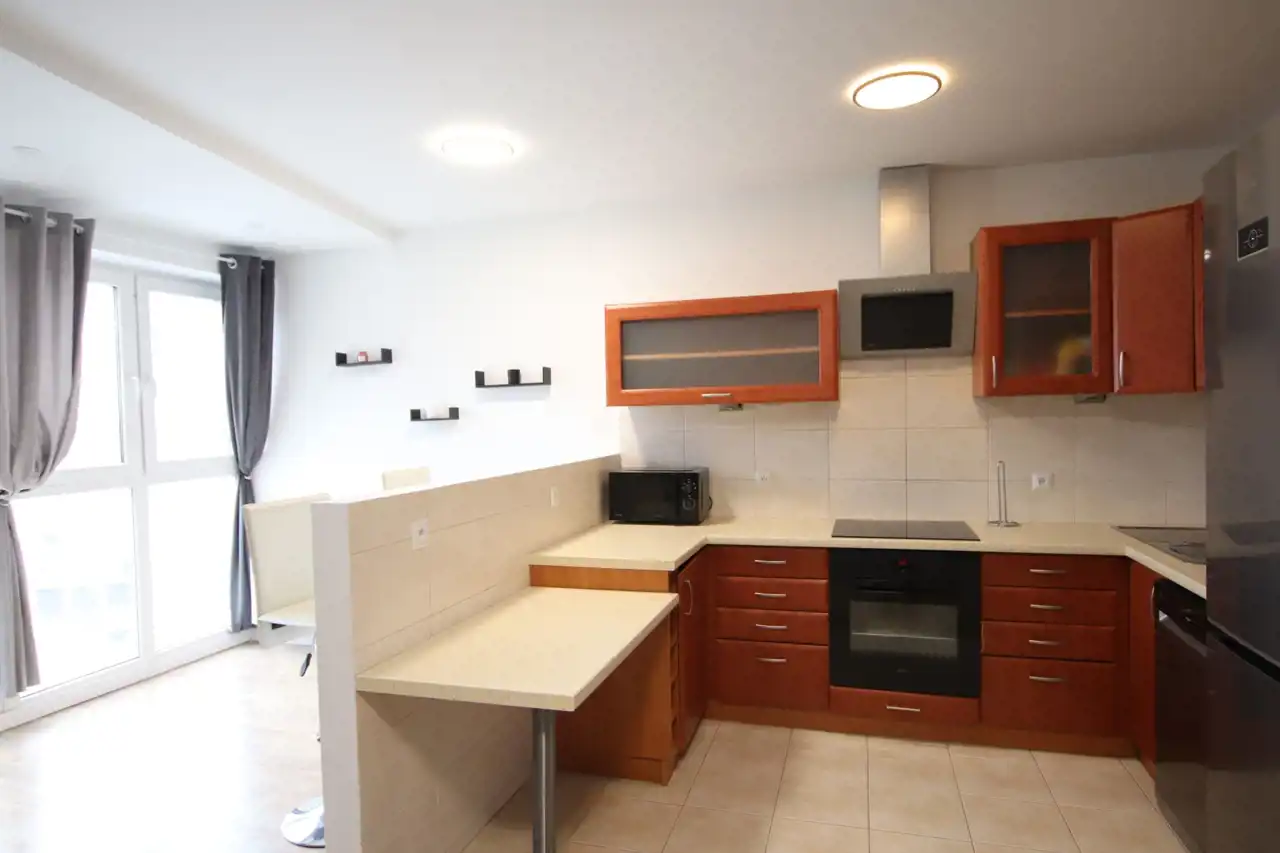 Kuchnia w pełni wyposażona w sprzęt AGD, dodatkowo w mieszkaniu znajduje się pralka. Lokal jest częściowo umeblowany i gotowy do wprowadzenia się.