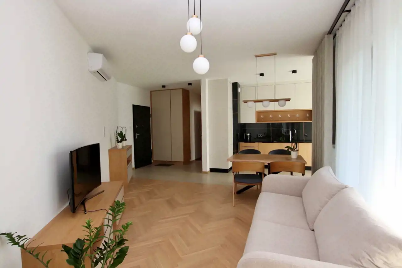 Mieszkanie nowo wykończone w wysokim standardzie. Jest w pełni umeblowane i wyposażone. Gotowe do zamieszkania.