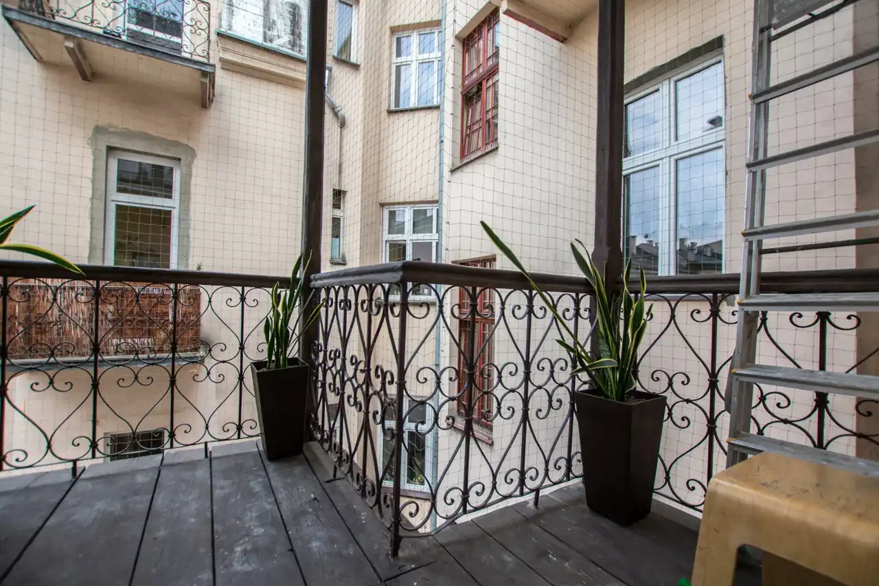 - Balkon przy jednej z sypialni wychodzący na spokojne podwórze