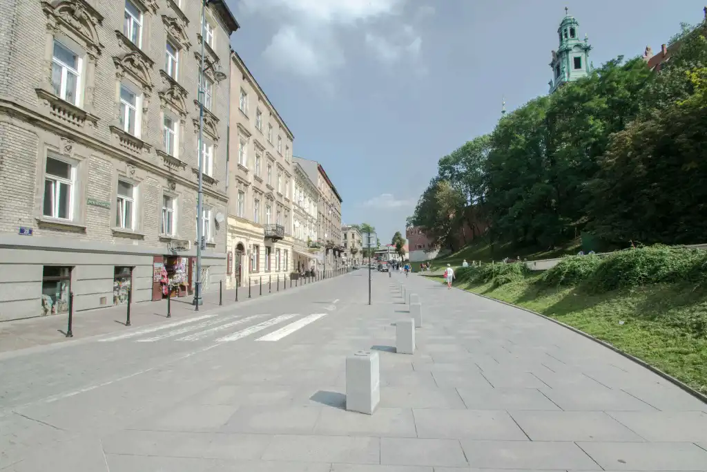 Ul. Podzamcze to jedna z najbardziej prestiżowych adresów w Krakowie – w zasięgu krótkiego spaceru znajdziesz Bulwary Wiślane, Rynek Główny, kawiarnie, restauracje oraz pełną infrastrukturę miejską. Przystanki komunikacji miejskiej są w bezpośrednim sąsiedztwie.