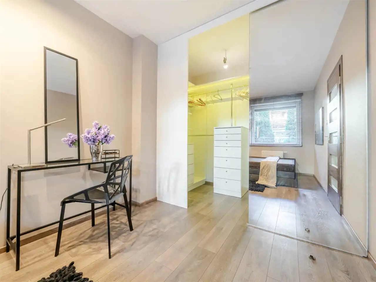 Układ: salon z aneksem kuchennym + 3 sypialnie + 2 łazienki + garderoba