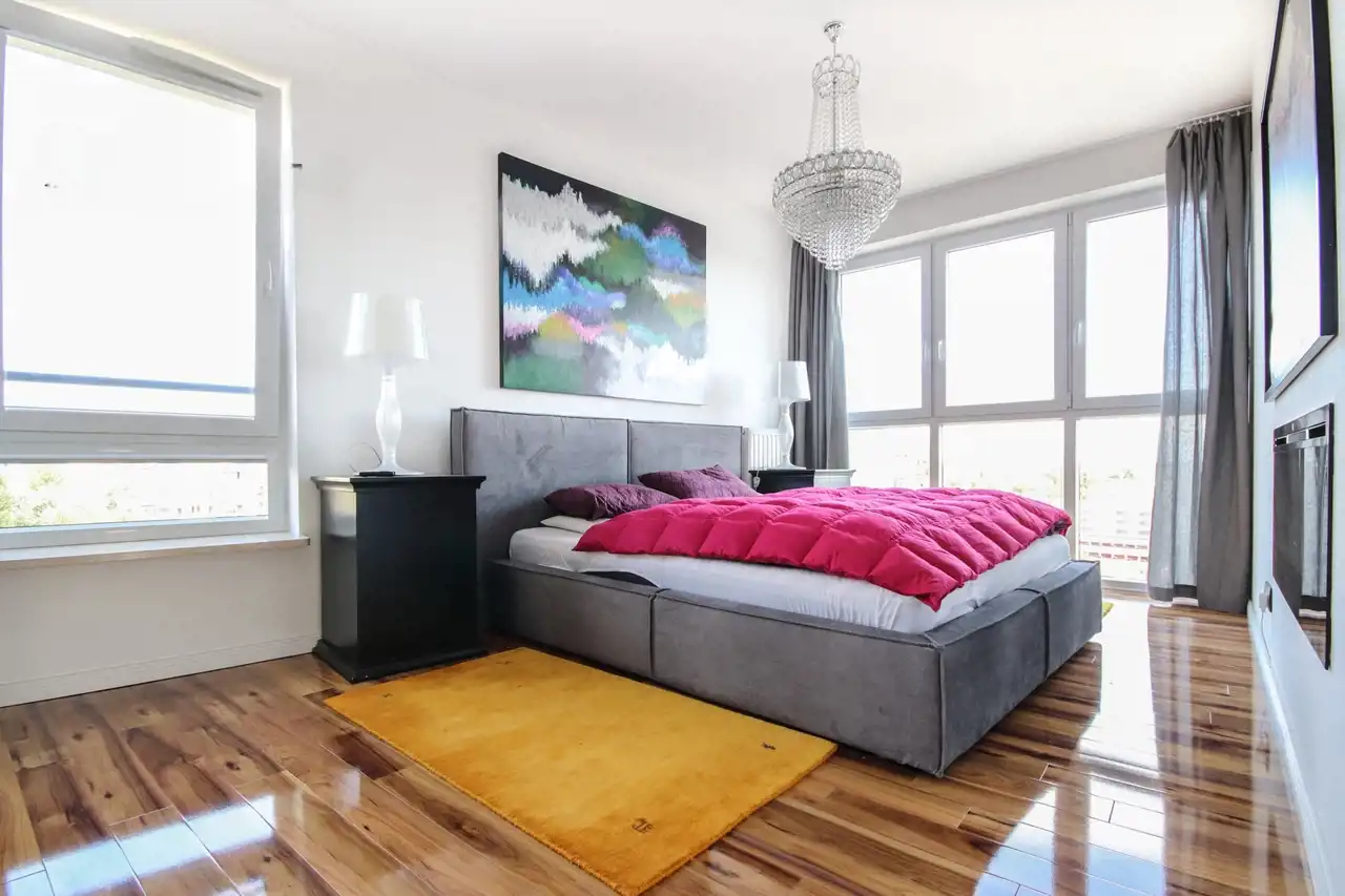 Apartament jest w pełni umeblowany – z dbałością o styl, funkcjonalność i indywidualny charakter. Każdy element wnętrza został przemyślany, od designerskich lamp po klasyczne akcenty w postaci stylizowanych mebli.