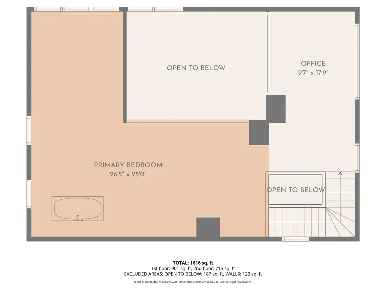 Drugi poziom to prawdziwa perełka tej nieruchomości – w całości otwarta przestrzeń, w której zaaranżowano sypialnię typu master, przestrzeń do pracy, a także… wolnostojącą wannę. To właśnie ten detal nadaje mieszkaniu ekskluzywny, nowojorski charakter. Przestrzeń wykończona jest drewnianą, wysokiej klasy podłogą i nowoczesnym oświetleniem. Wszystko to otulone dużą ilością światła dziennego dzięki panoramicznym oknom.