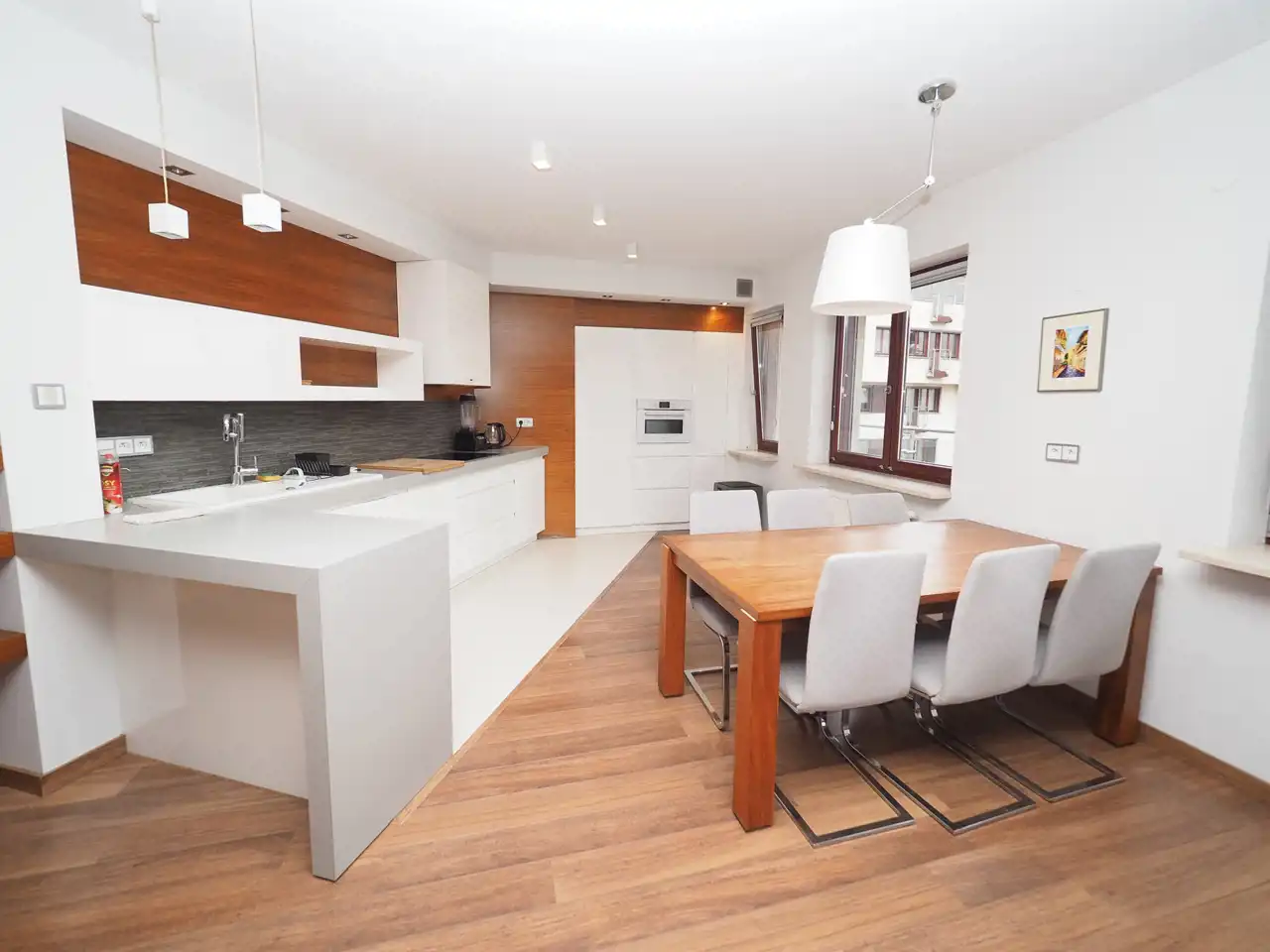 Luksusowy apartament liczy 107 m2 i znajduje się na 3 piętrze apartamentowca. Niewątpliwym atutem jest duży, taras.