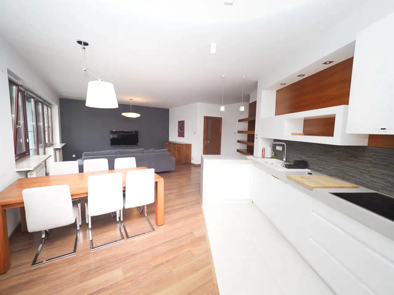 Wykończone jest w wysokim standardzie oraz wyposażone we wszystkie sprzęty RTV/AGD.