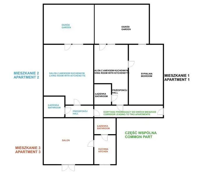 - Powierzchnia: 83,5 m² - 3 mieszkania na dwóch księgach wieczystych