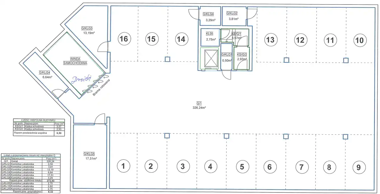 Garaż jest zamykany i prowadzi do niego platforma ( winda ) - posiada własną księgę wieczystą.