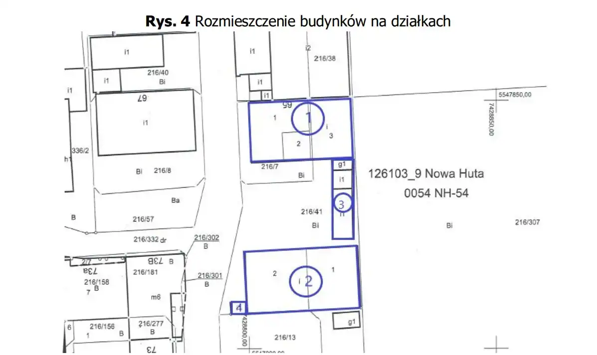 Nieruchomość gruntowa zabudowana zespołem budynków przemysłowo-usługowych, zbudowanych w latach 90 -tych w okolicach ul. Centralnej.