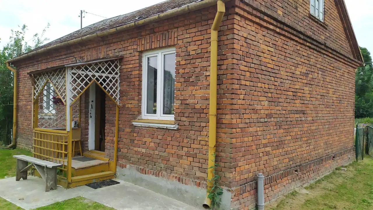 Dom ma ściany dwuwarstwowe murowane ciepłe suche,pustak , pustka i elewacja z cegły czerwonej. Instalacje: kanalizacja, CO węglowe z kaloryferami , woda z sieci gminnej ,linia telefoniczna, dodatkowo klasyczny piec kaflowy , kuchnia gazowa( butla ) i kaflowa, dwa jasne duże pokoje przygotowane do zamieszkania , kuchnia z 2 oknami , kotłownia z oknem i rozpoczętą łązienką jest WC i kabina pryszniacowa , dom ma 72 mkw. na parterze, ew. do adaptacji poddasze- strop betonowy, dach pokryty nową konstrukcją i blachą w 2024 roku wraz z jego konstrukcją , CO na opłał stały, piec z pompą obiegową i kaloryferami aluminiowymi nowegoo typu,okna PCV. Na nieruchomość składają się: budynek mieszkalny murowany wolnostojący umeblowany i wyposażony , działki ok 5 ha ze stodołą drewnianą o, pom. gospodarcze x2; loch/piwnica murowana obok domu .