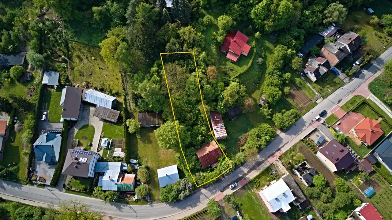 Sama działka jest w kształcie zbliżonym do prostokąta o szerokości 20 m i długości 50 m. Jest płaska, zadrzewiona, ogrodzona, położona bezpośrednio przy drodze asfaltowej o niewielkim natężeniu ruchu.