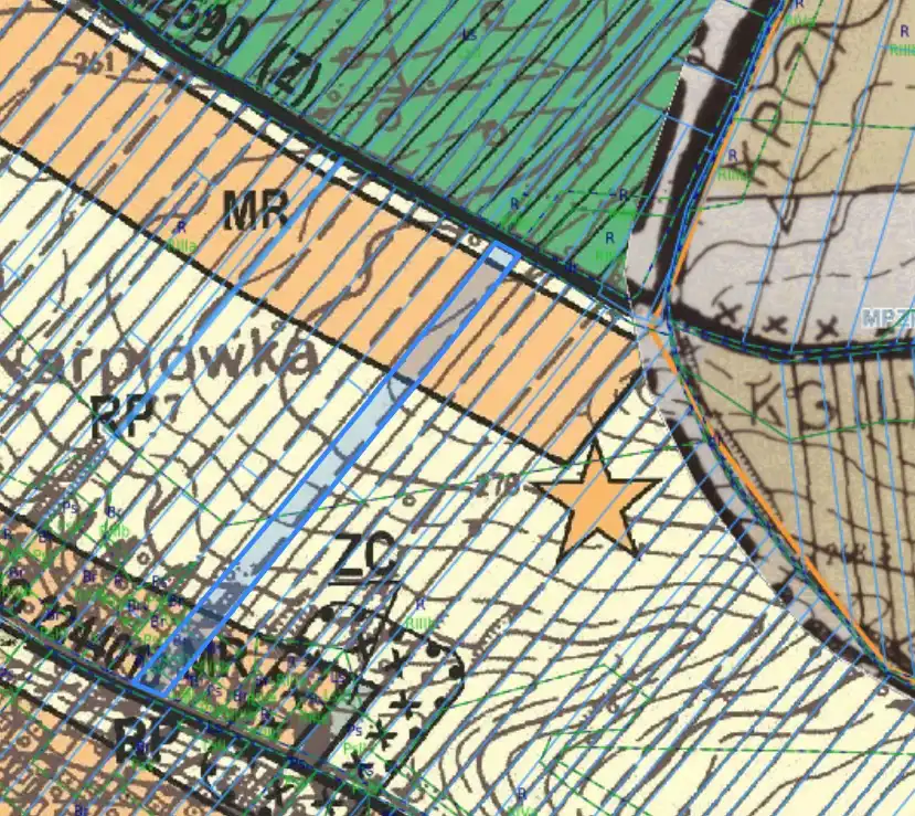 Według MPZP działka została przeznaczona pod MR – zabudowę zagrodową - na obszarze około 25 arów, w pozostałej części – pod RP – uprawy polowe. Klasa ziemi na działce w całości RIIIa.