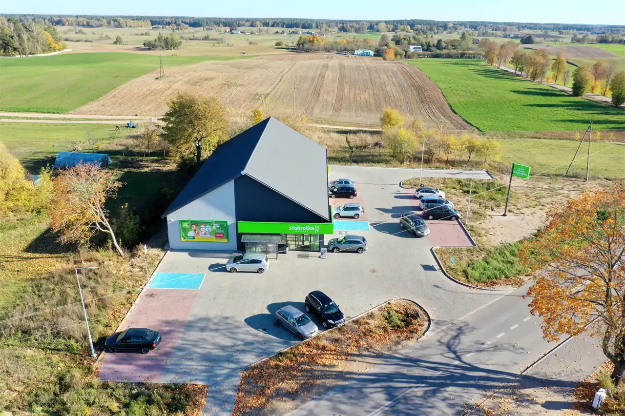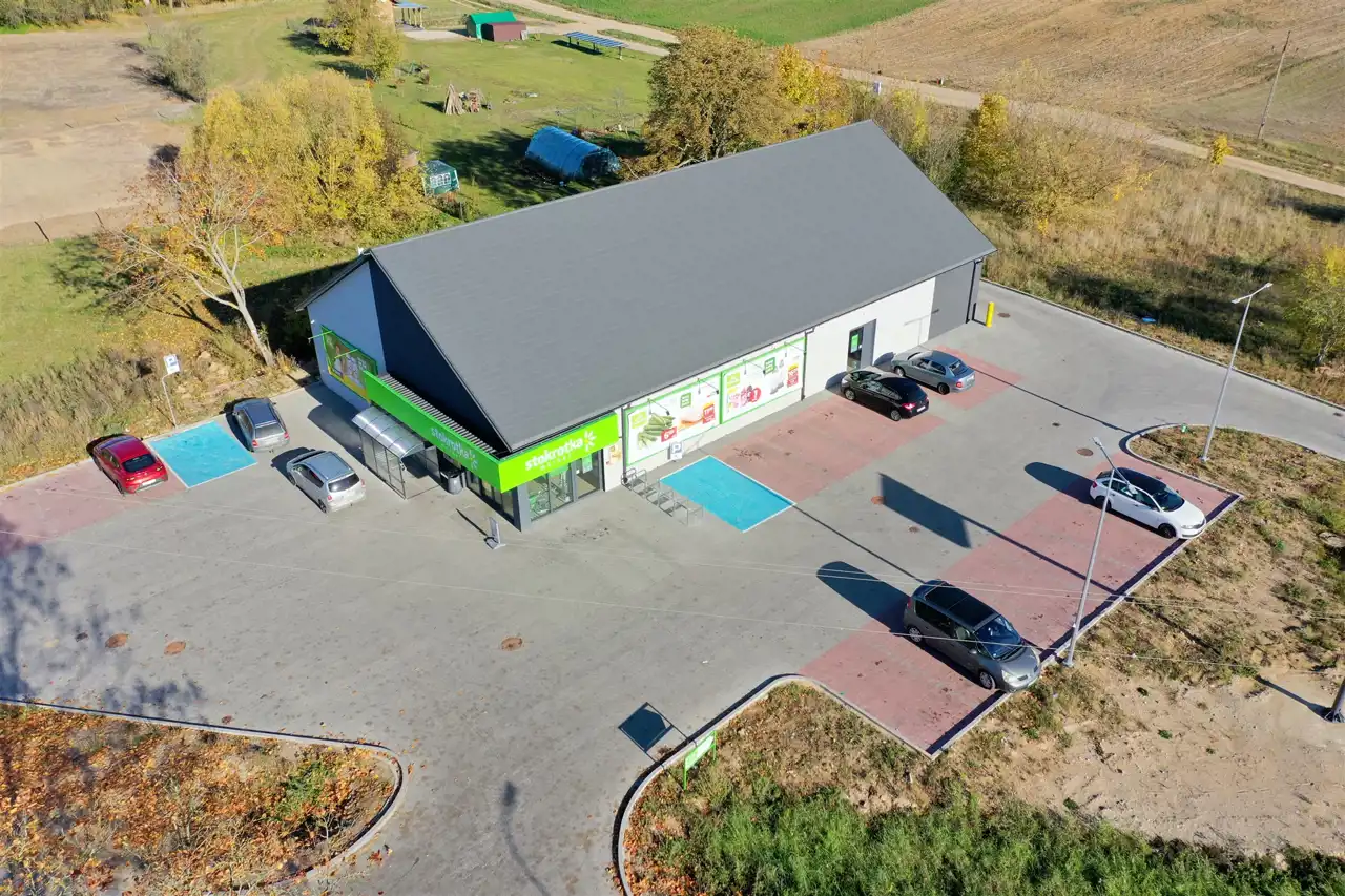 Budynek wybudowany został w 2023 roku, składa się z sali sprzedaży, zaplecza socjalnego oraz komory dostaw, ogrzewany jest pompą ciepła dodatkowo w budynku zamontowana jest klimatyzacja. Położony jest na dużej działce 2762 m2, zagospodarowanej zgodnie z wymogami najemcy.