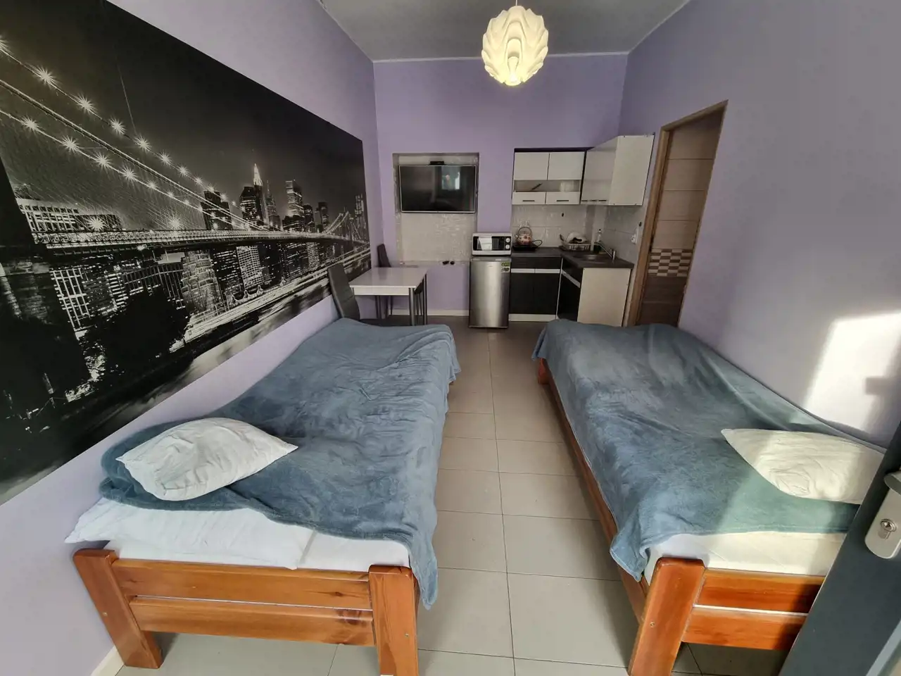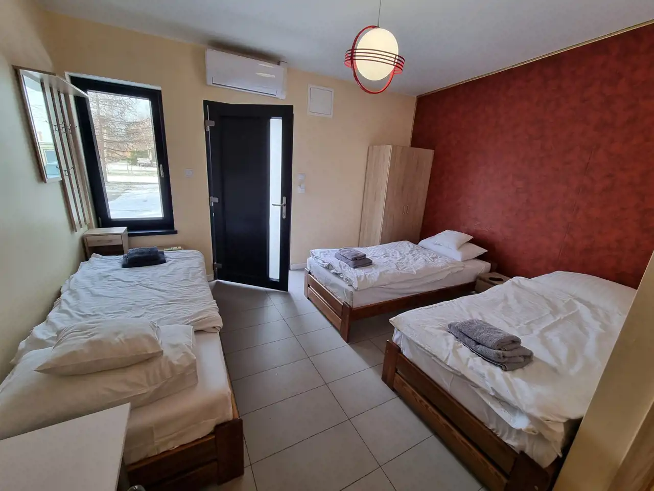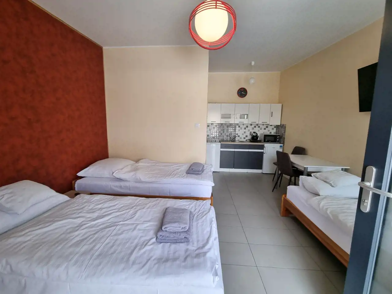 POKOJE: jednoosobowe łóżka, stół z krzesłami, telewizor.