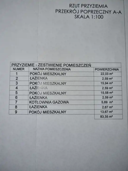 Powierzchnia budynku: 83,35 m2.