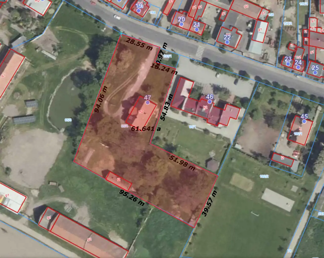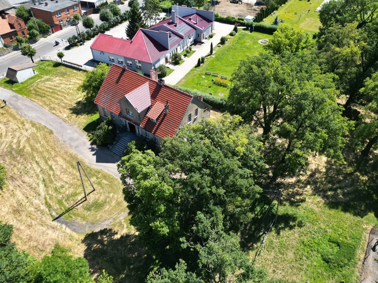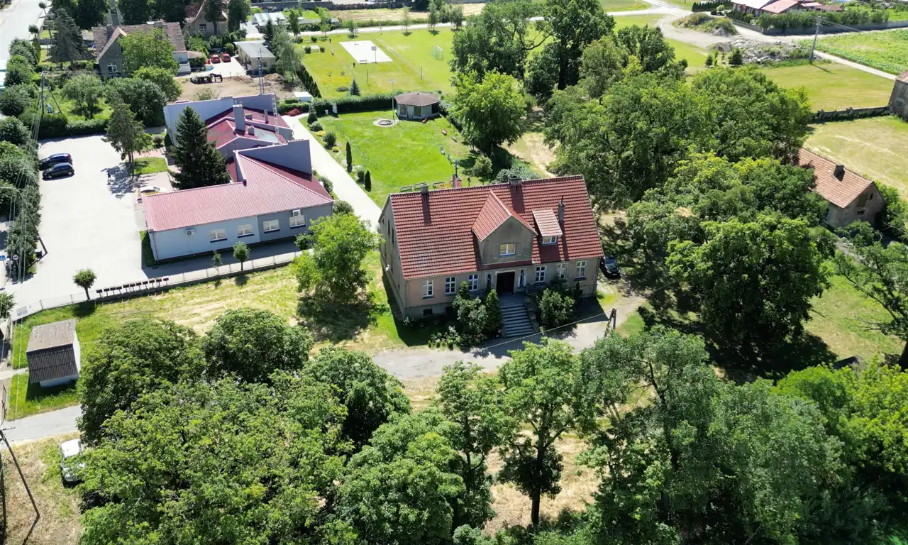 Budynek o powierzchni całkowitej 335,24 m2 usytuowany jest na zagospodarowanej w zieleń i ogrodzonej działce o powierzchni 6120 m2.