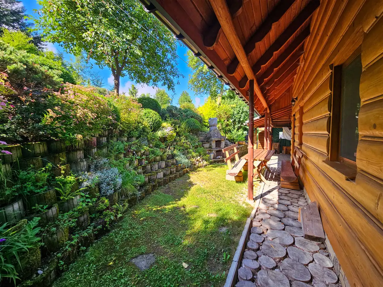 Działka ma powierzchnię 2000 m2, położona jest na północnym zboczu, pięknie utrzymana z nasadzenia różnorodnych krzewów, drzewek, oraz licznymi elementami małej architektury, grill, murki itp.