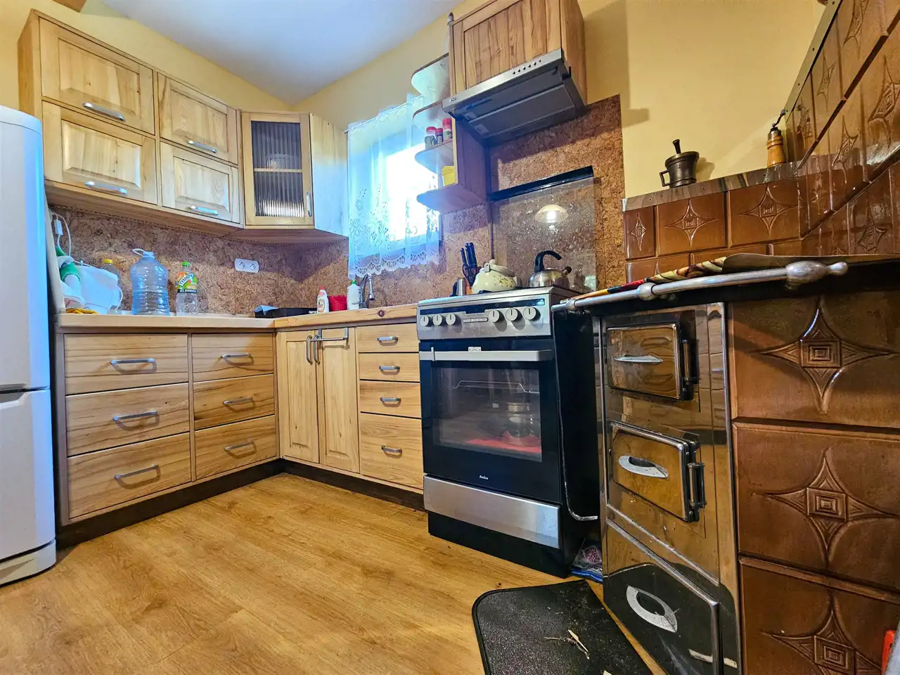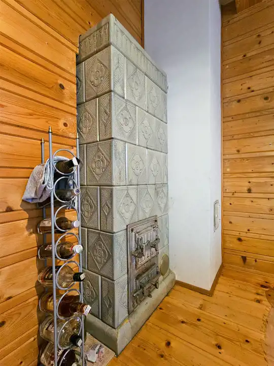 Źródło ciepła zapewniają tradycyjne piece kaflowe, kuchenny, oraz drugi ozdobny w sypialni, dodatkowo ogrzewania podłogowe w kuchni oraz łazience.
