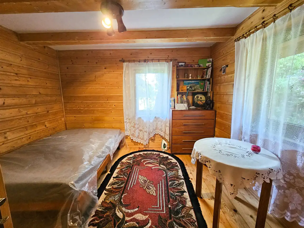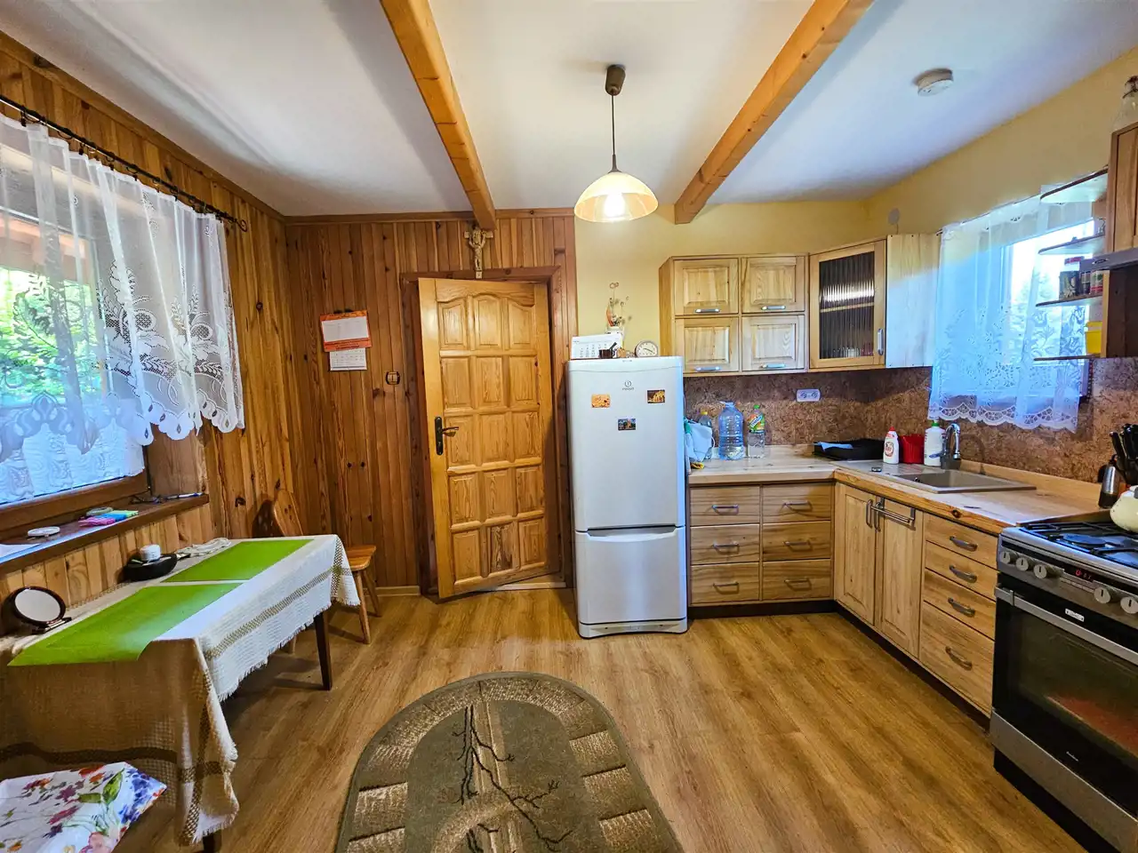 Oferowana nieruchomość została odbudowana w 2010 roku na bazie dawnego budynku, wykorzystywana jest obecnie jako całoroczny budynek rekreacyjny, wybudowany w konstrukcji drewnianej szkieletowej , powierzchnia użytkowa wynosi około 70 m2, całkowita około 80 m2, posiada następujący rozkład: