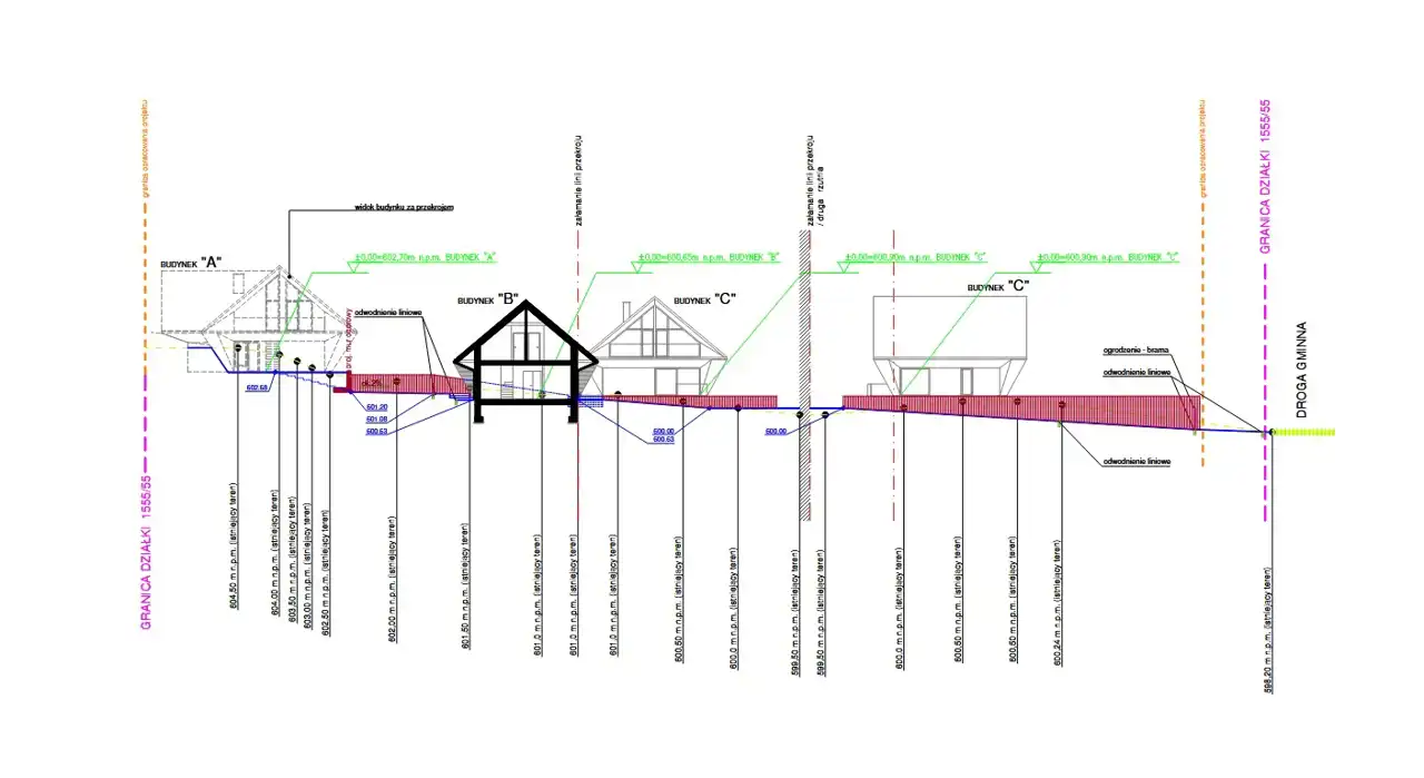 Dla nieruchomości zostało wydane pozwolenie na budowę trzech domów jednorodzinnych, zaprojektowanych z myślą o wynajmie krótkoterminowym.
