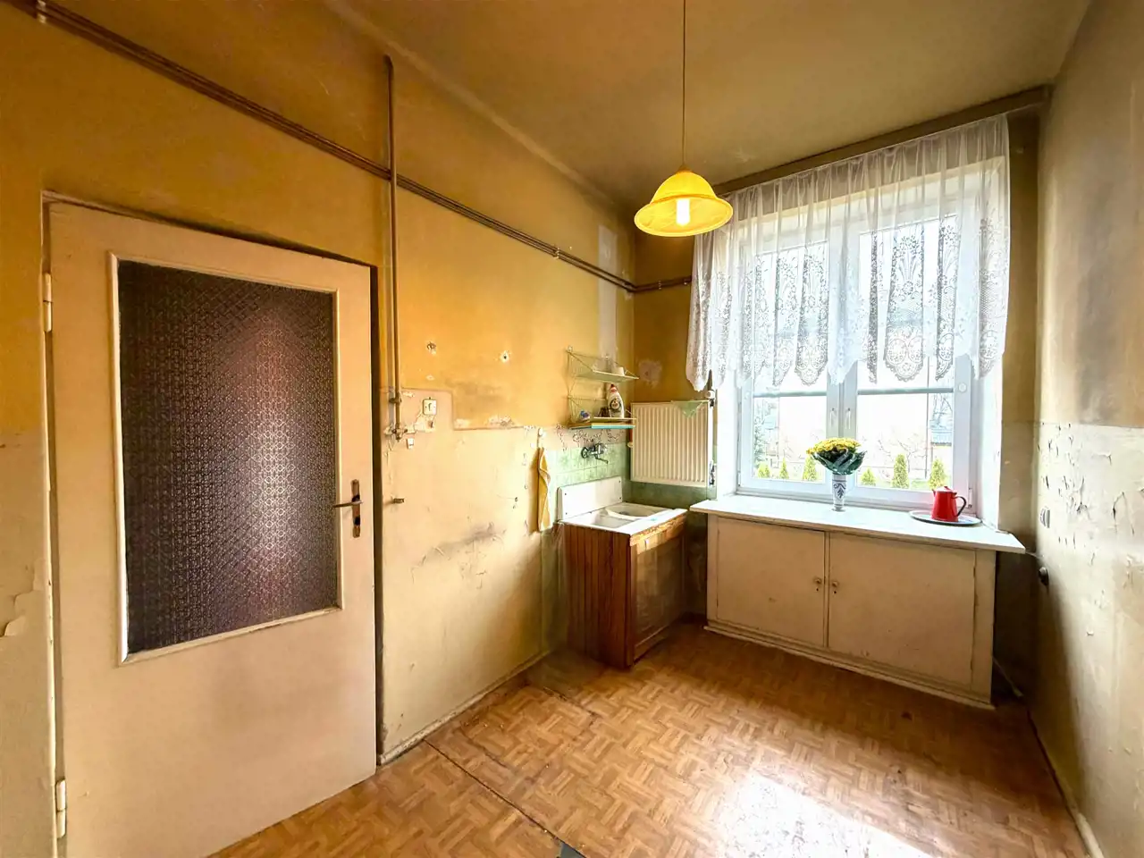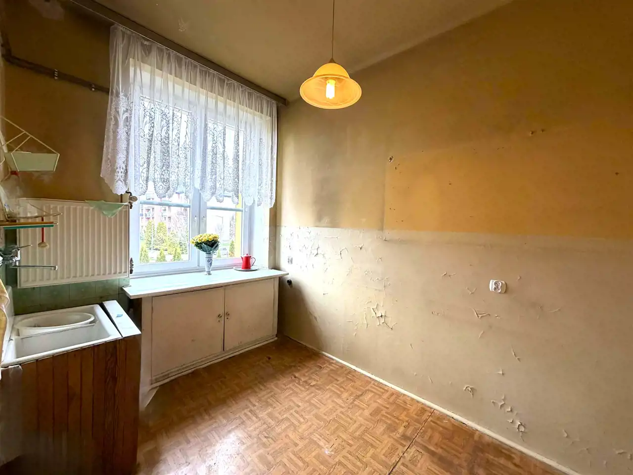 Mieszkanie przeznaczone jest do generalnego remontu, co daje możliwość pełnej aranżacji według własnych potrzeb i gustu.