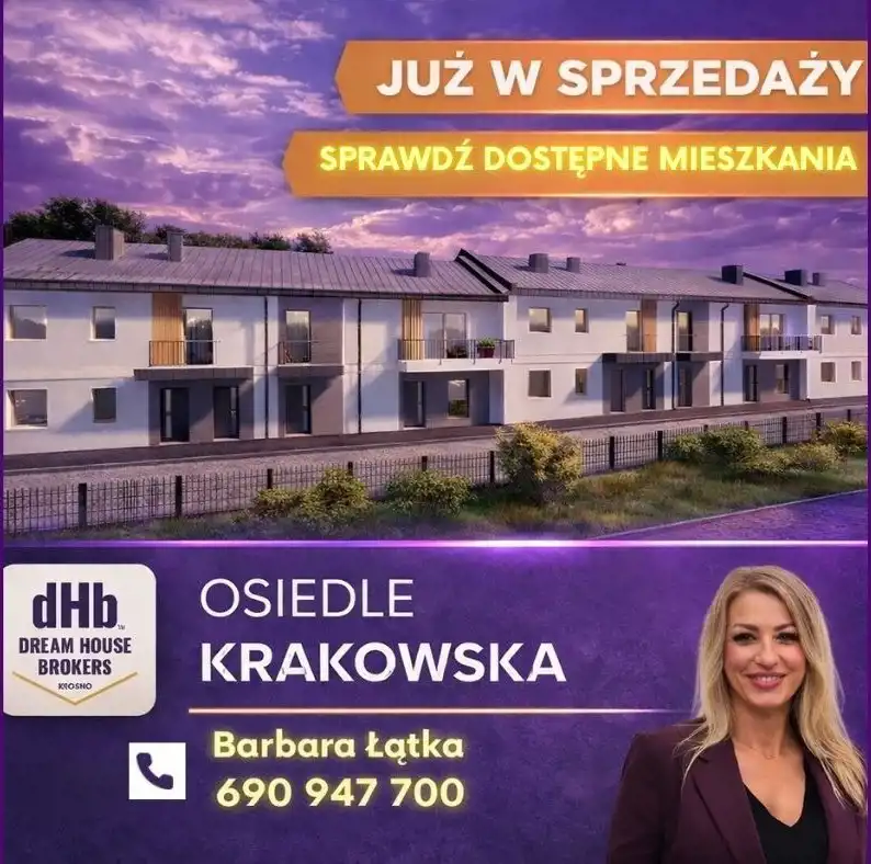 Osiedle Krakowska to wyjątkowa, kameralna inwestycja mieszkaniowa zlokalizowana w ścisłym centrum Krosna, przy ulicach Elizy Orzeszkowej i Krakowskiej. Obejmuje budowę pięciu budynków mieszkalnych jednorodzinnych, dwulokalowych w zabudowie szeregowej, wraz z wewnętrznymi instalacjami: gazową, wody zimnej, ciepłej wody użytkowej, kanalizacji sanitarnej, centralnego ogrzewania, elektroenergetyczną, kanalizacji deszczowej wraz z przebudową istniejącego zjazdu z drogi gminnej oraz terenu utwardzone i miejsca postojowe. Planowany termin zakończenia prac budowlanych: 01.09.2027 r.
