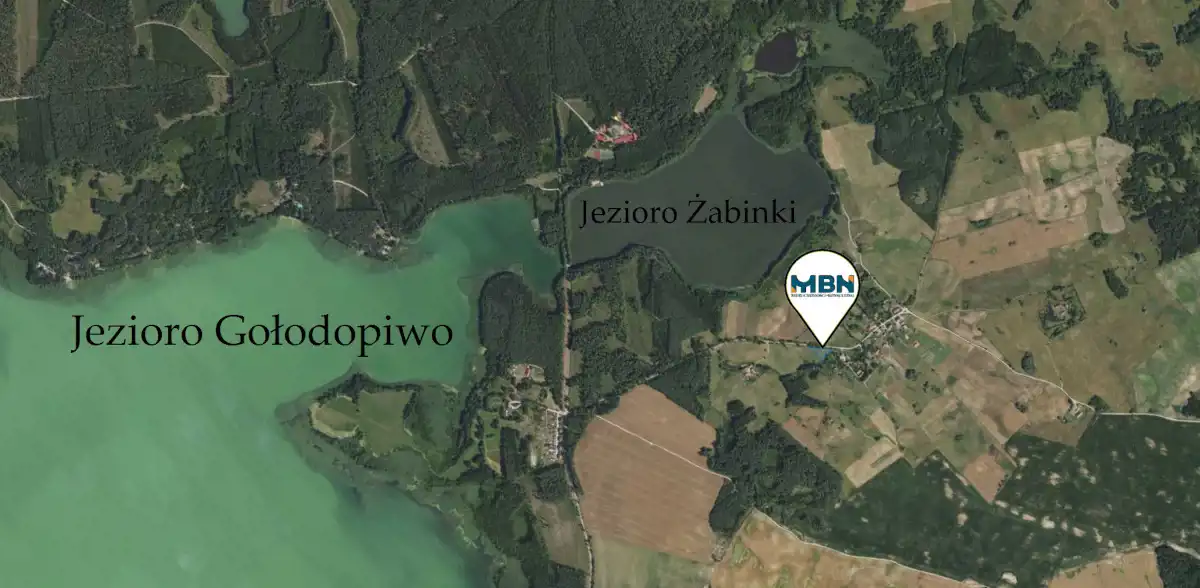 Działka oddalona jest od jeziora Żabinki ok. 1km (plaża gminna);