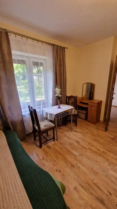 Na zewnątrz budynku jest miejsce z możliwością parkowania czterech samochodów. Do budowy domu użyto materiałów najlepszej jakości, a prace budowlane wykonano z należytą starannością. Doskonała stolarka okienna i drzwiowa, KOMPLETNIE WYPOSAŻONY w meble - tak jak widać na zdjęciach ... DOM zgłoszony do użytkowania w Państwowym Inspektoracie Nadzoru Budowlanego.