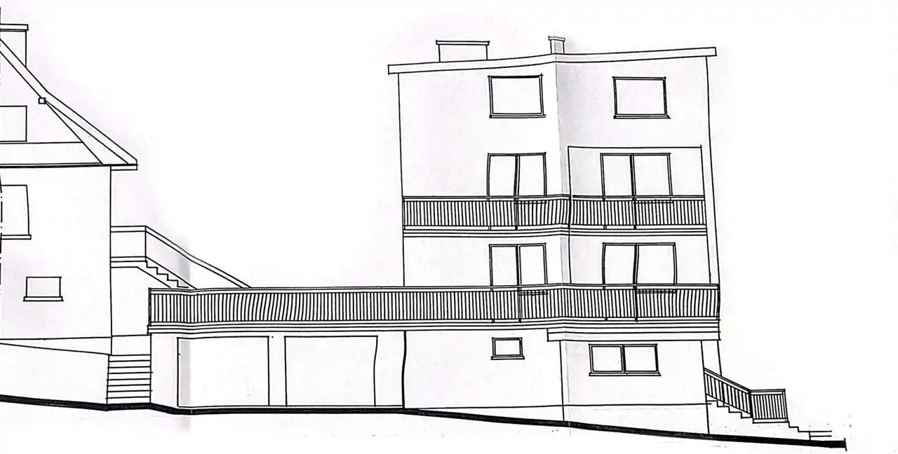 Oferta składa się z budynku pensjonatowego oraz z dodatkowym, oddzielnym budynkiem mieszkalnym. Obydwa budynki zostało połączone garażem dwustanowiskowym na którym znajduje się taras dla obydwu budynków.