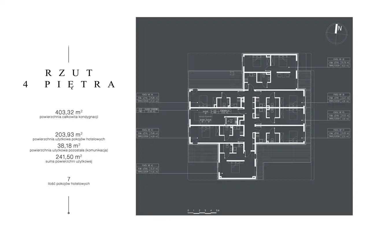 IV piętro hotelowe | 203,93 | Apartamenty | 7 | 38,18 |