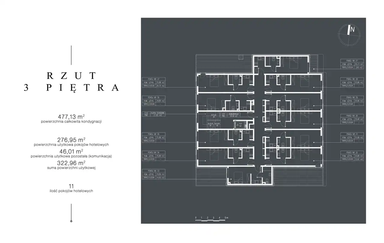 III piętro hotelowe | 276,95 | Apartamenty | 11 | 46,01 |