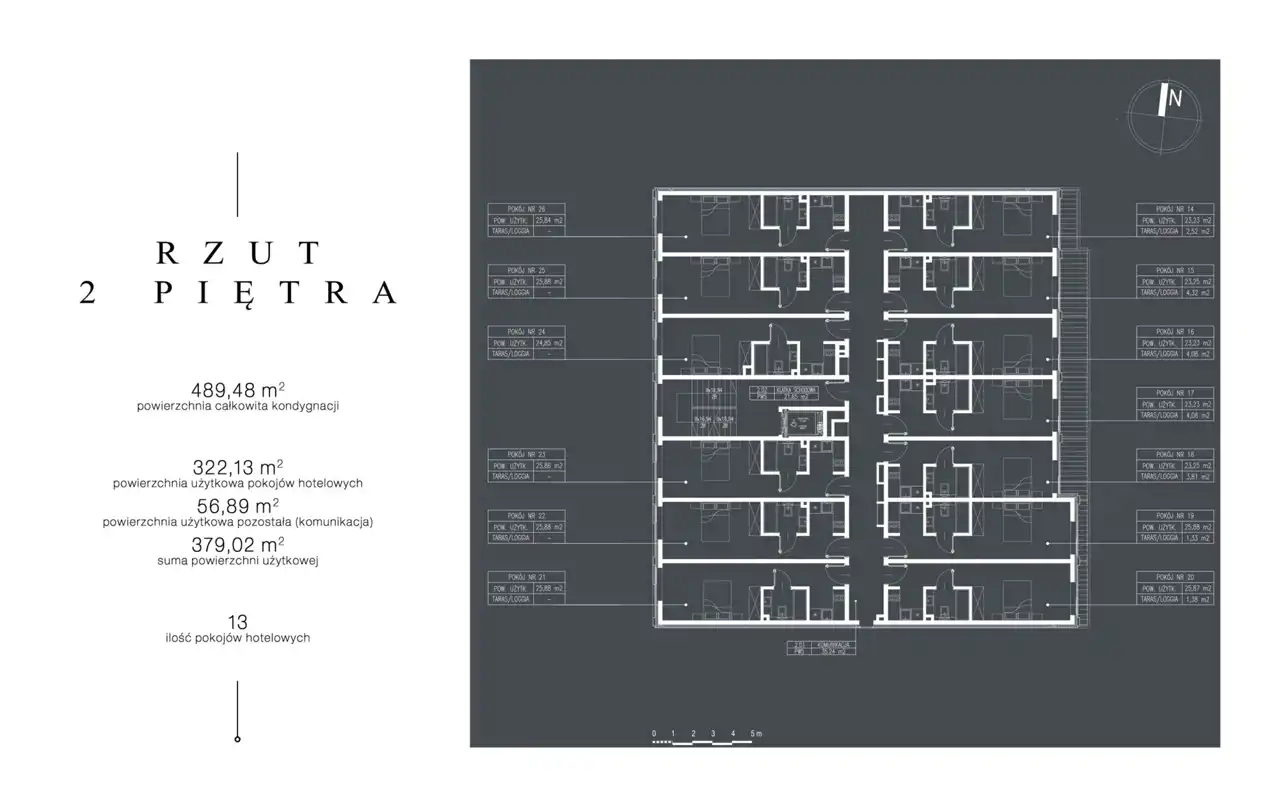 II piętro hotelowe | 322,13 | Apartamenty | 13 | 56,89 |