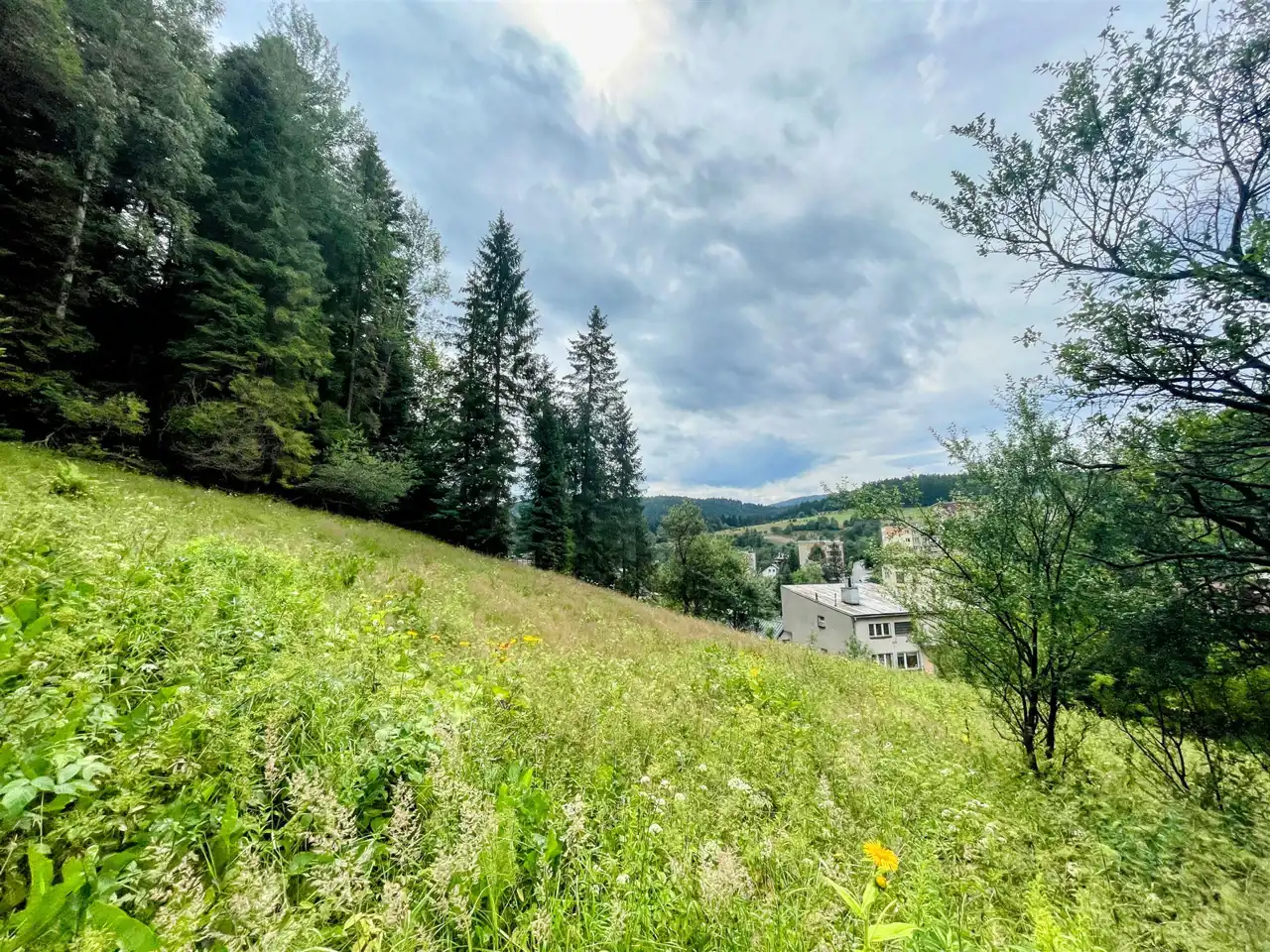 Działka zlokalizowana u podnóża góry w pobliżu lasu, wystawa północno-zachodnia. Piękne widoki na okolicę w tym Słotwiny wraz z wieżą widokową.