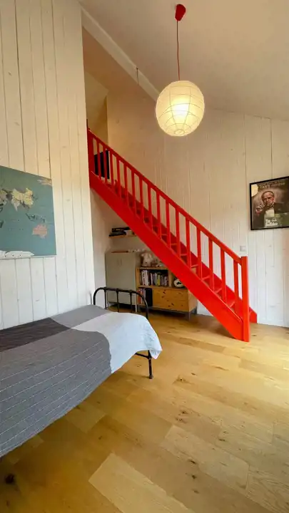 W dwóch sypialniach dodatkową przestrzenią są zagospodarowane antresole, idealne w pokojach dziecinnych bazy do zabawy lub miejsce relaksu lub nauki!
