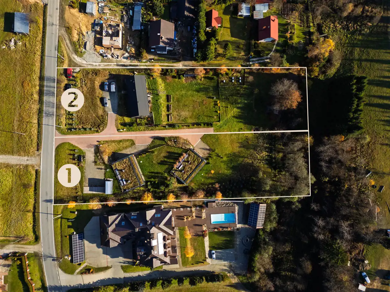 Nieruchomość położona jest na ogromnej działce o powierzchni 0,32 ha. To prywatność, ogród, panorama natury — ale przede wszystkim realna możliwość rozwoju i rozbudowy. Działka daje potencjał dobudowania dodatkowych obiektów mieszkalno-usługowych, co czyni tę ofertę idealną także pod inwestycję.