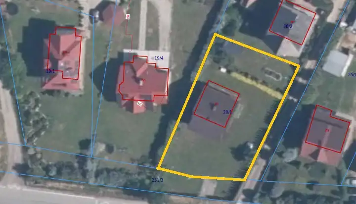 - Działka częściowo zagospodarowana, prostokąt
