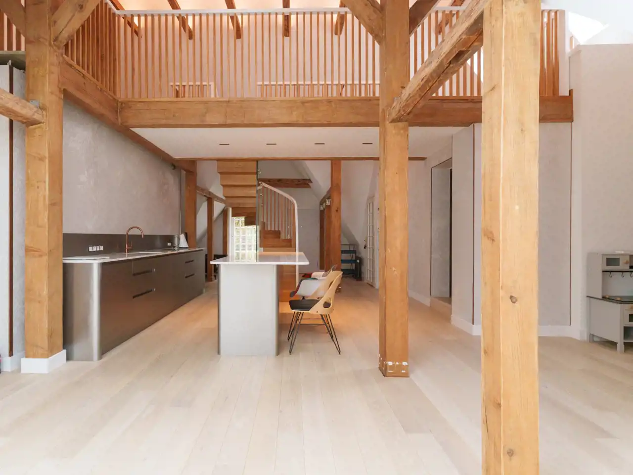 Dodatkowo apartament posiada (27m2 ) przestrzeń na antresoli z regularną wysokością do wykorzystania w/g upodobań i fantazji przyszłych Właścicieli. Aktualnie znajdują się kolejne 2 sypialnie oraz łazienka.