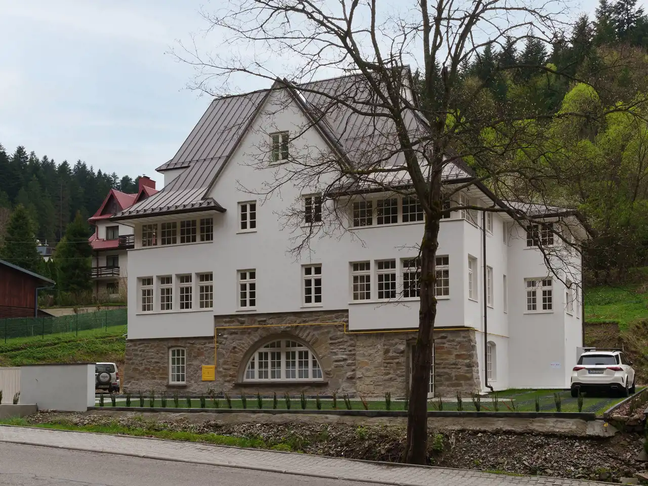 Lokalizacja na wzniesieniu przy ulicy Pułaskiego w odległości 15-minutowego spaceru do Deptaku w Krynicy stanowi doskonały wybór dla osób, które chcą żyć w centrum miasta, a jednocześnie korzystać z pięknych terenów zielonych.
