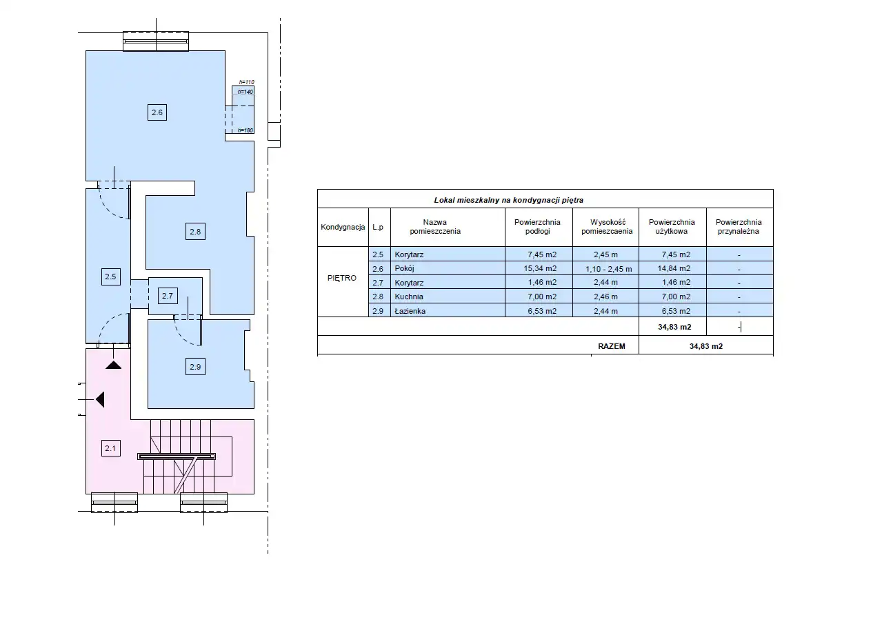 - Charakterystyka mieszkania 34.83 m2, 1 pokój