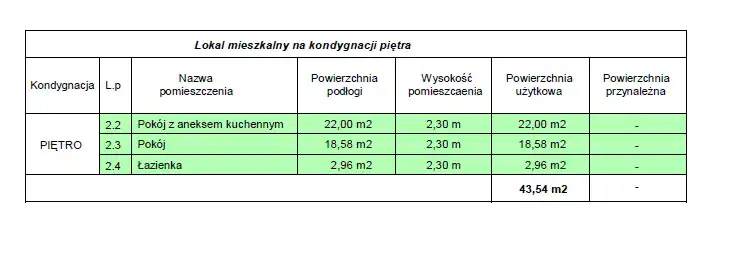 - Charakterystyka mieszkania 43.54 m2, 2 pokoje