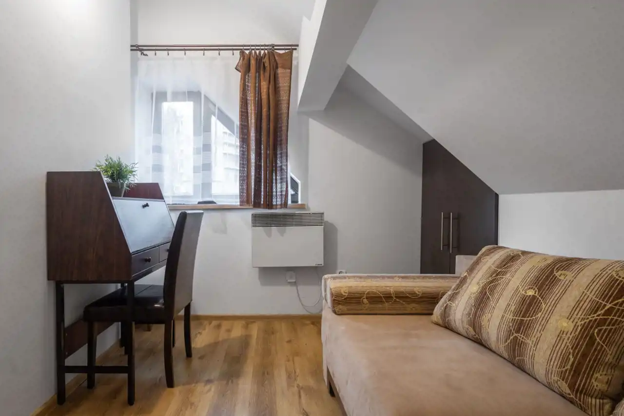 Apartament o powierzchni ok 50m/kw licząc po podłodze (ze skosami), wykończony w bardzo wysokim standardzie.