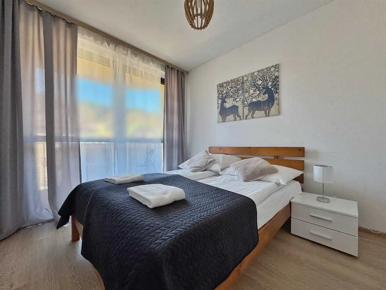 Zlokalizowany na trzecim piętrze w nowoczesnym budynku z windą. Apartament składa się z dwóch pokoi, jeden z nich do przestronna sypialnia z dostępem do dużego balkonu z wystawą zachodnią, drugi to przestronny salon z balkonem francuskim, oprócz tego kuchnia z jadalnią oraz łazienka z prysznicem i WC.