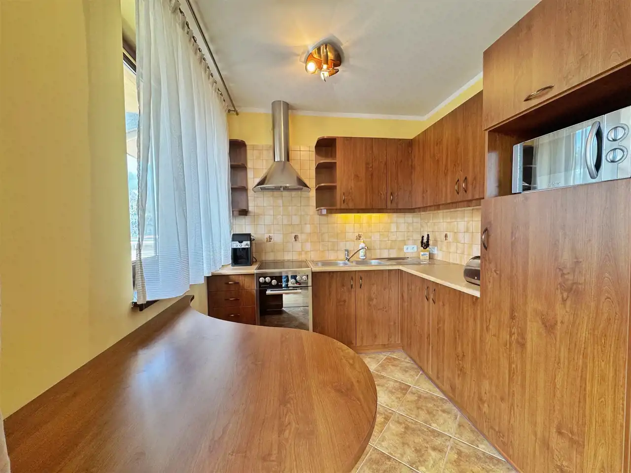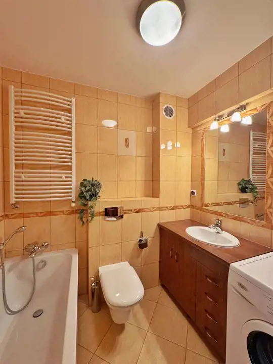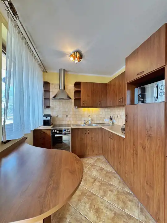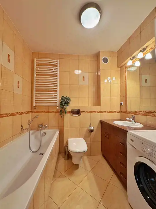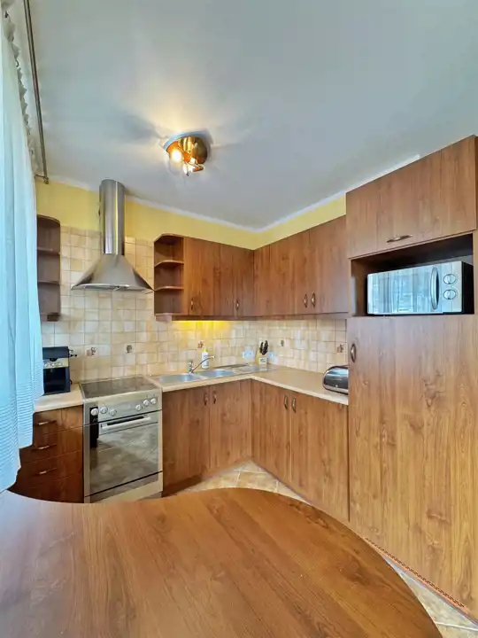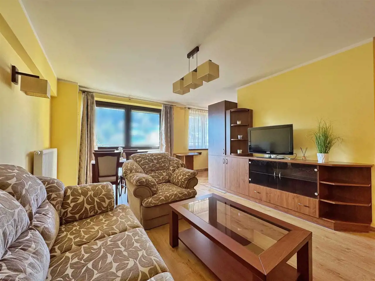 Zlokalizowany na czwartym piętrze w nowoczesnym budynku z windą. Apartament składa się z dwóch pokoi, jeden z aneksem kuchennym pełniącym rolę przestronnego salonu z jadalnią i wyjściem na duży balkon oraz przytulnej sypialni również z balkonem, przedpokoju oraz łazienki z wanną i WC. Pełne umeblowanie w wysokim standardzie, które pozostaje dla nowego właściciela, zapewnia komfortowy pobyt dla mieszkańców lub gości.