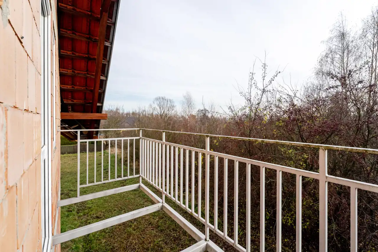 Z balkonu na poddaszu roztacza się przyjemny widok na okolicę.