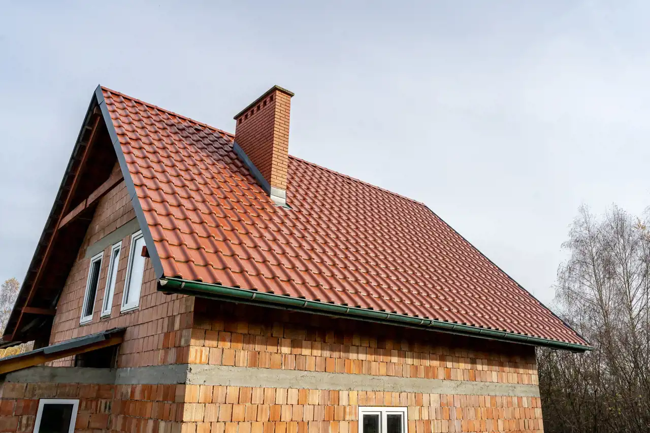 dach o konstrukcji drewnianej, pokryty dachówką ceramiczną Titania