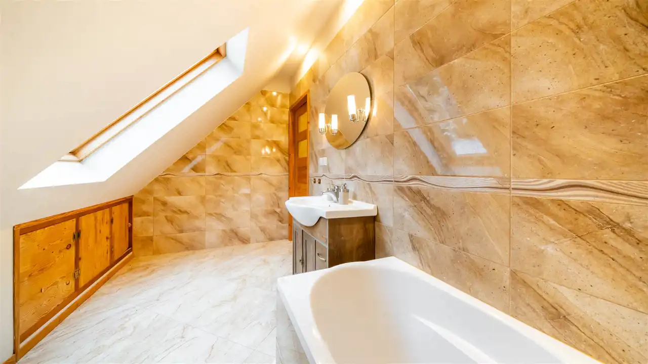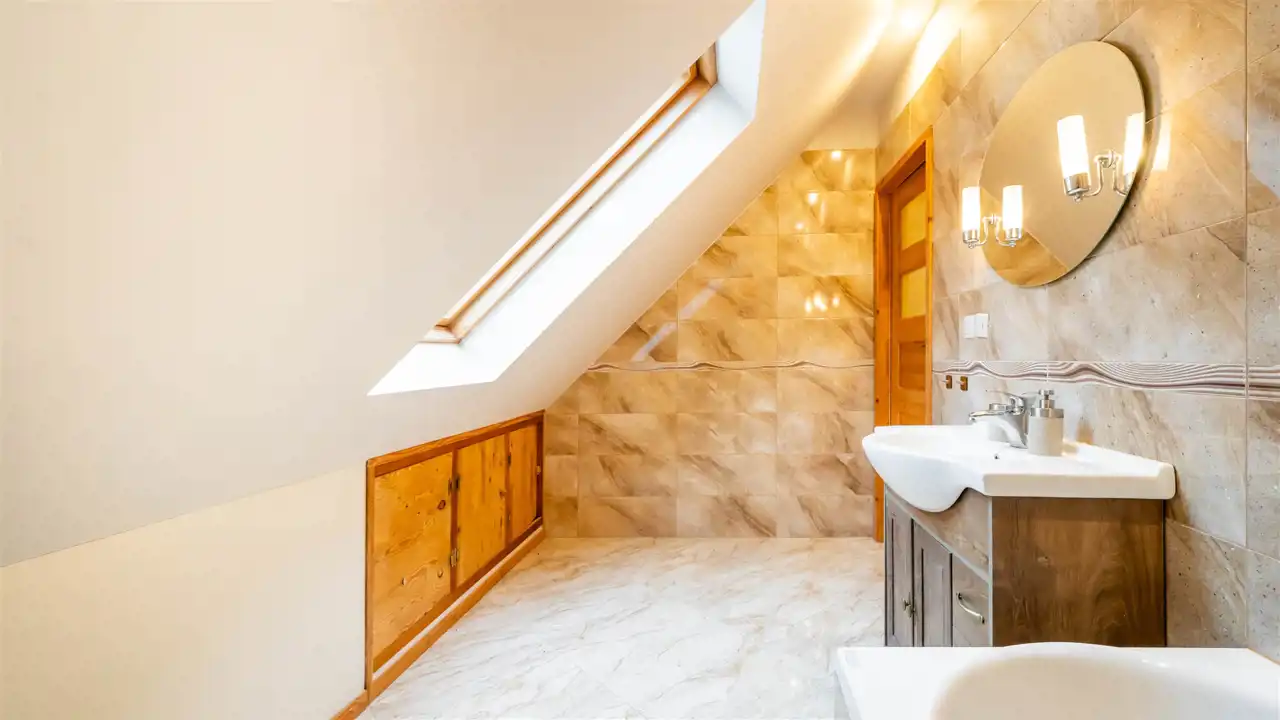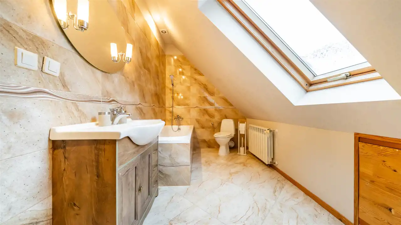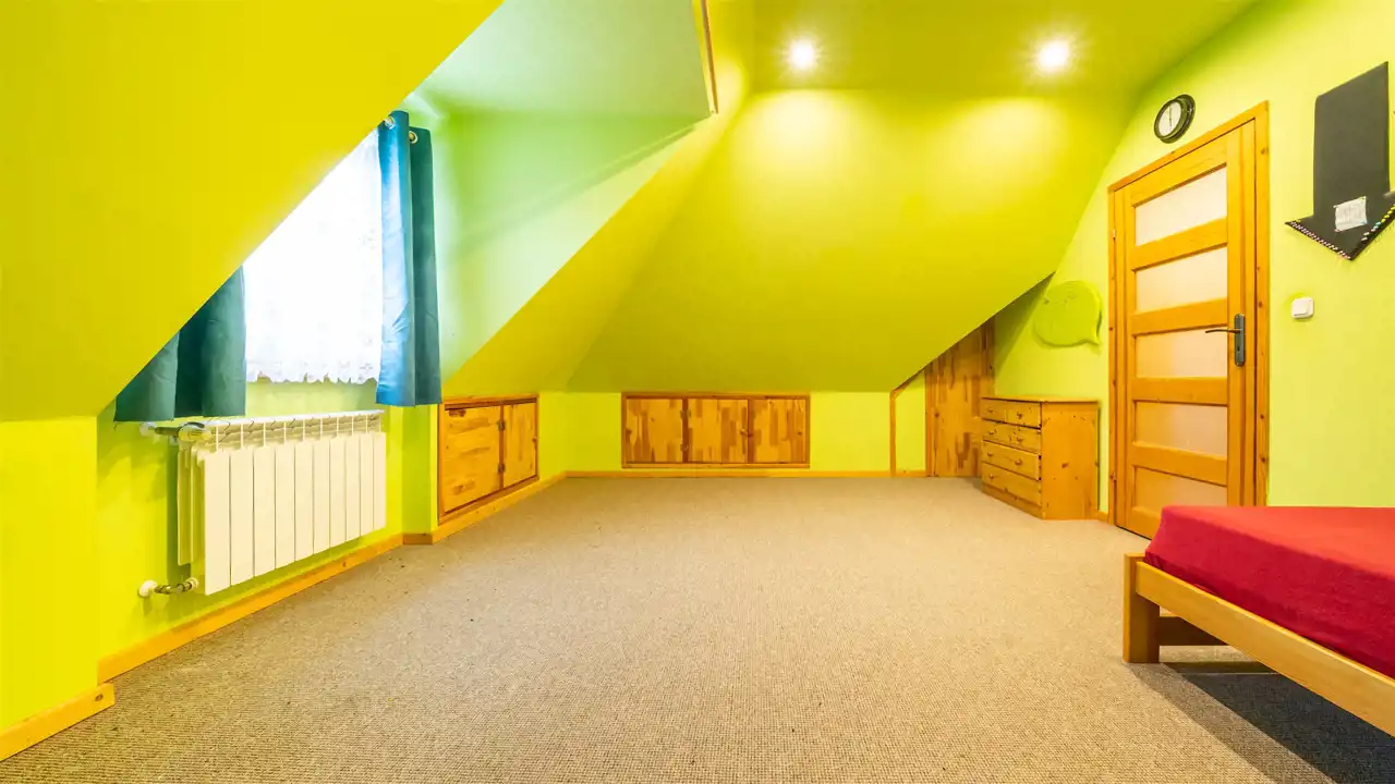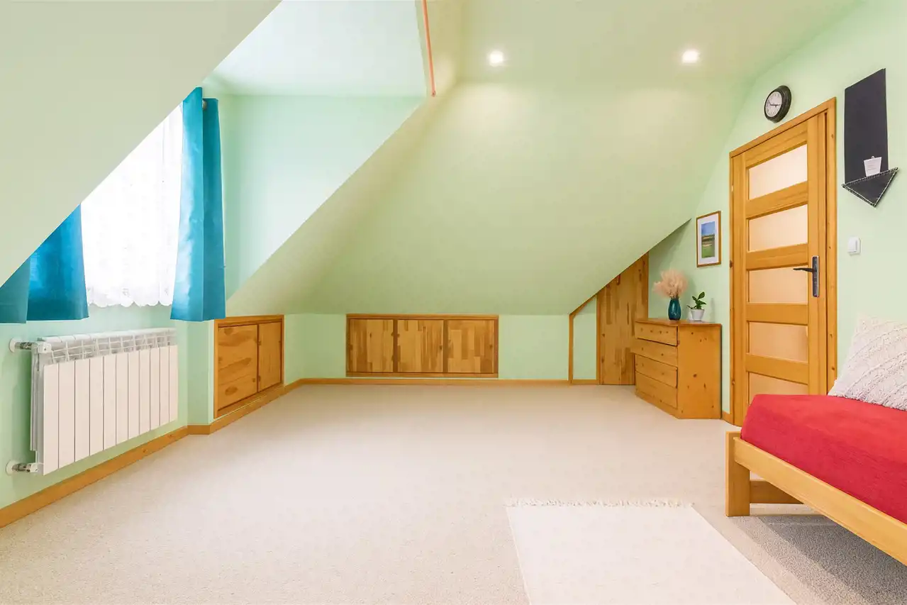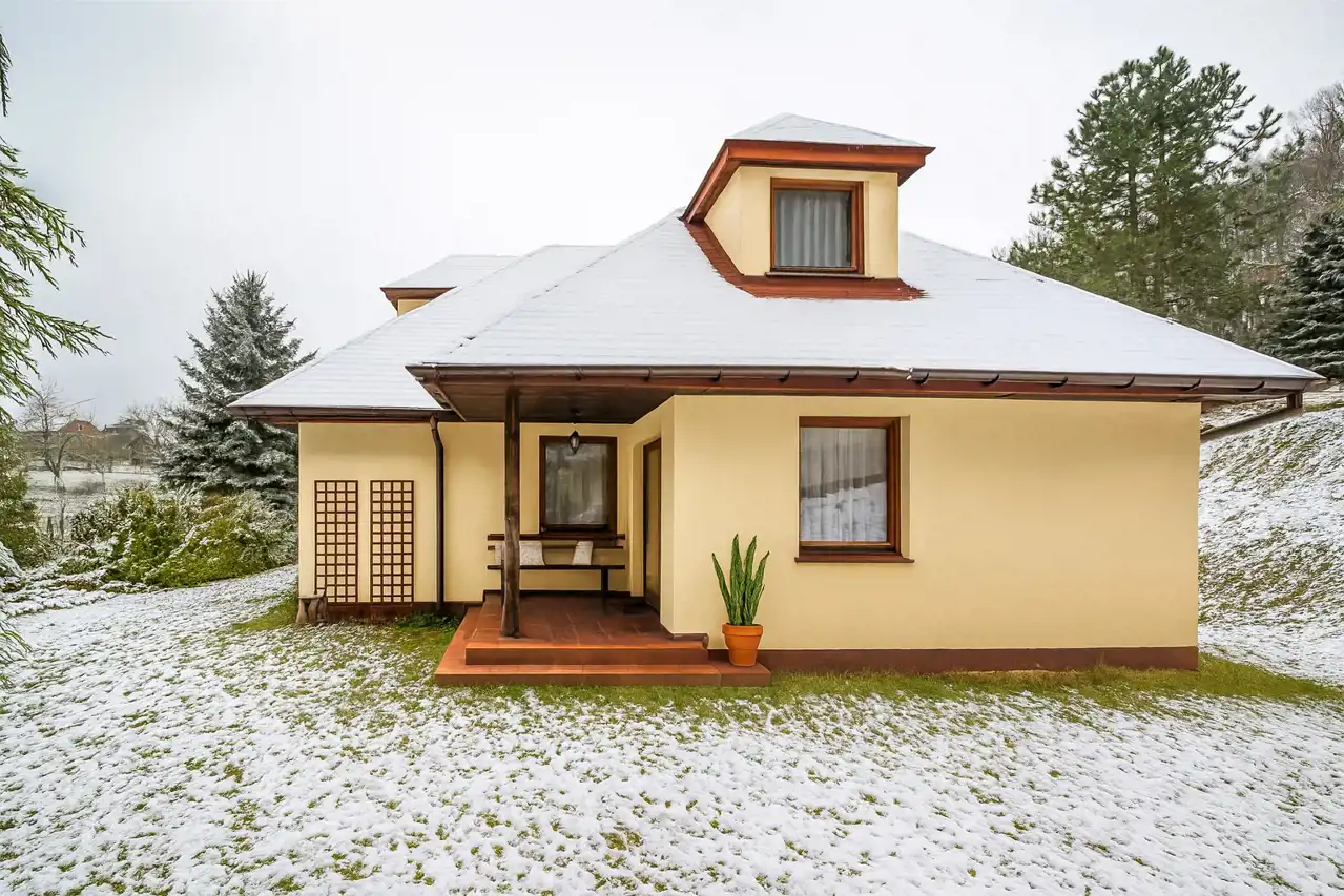 - dach kryty gontem bitumicznym i ocieplony 30 cm pianką,