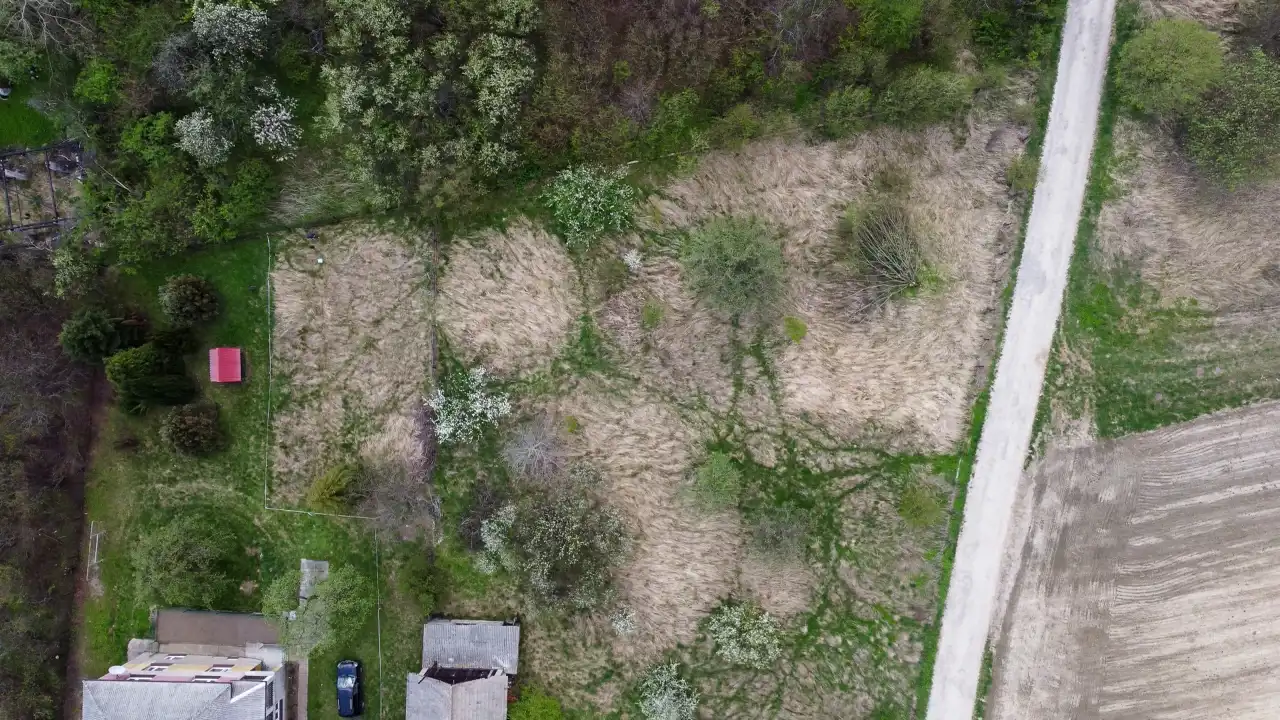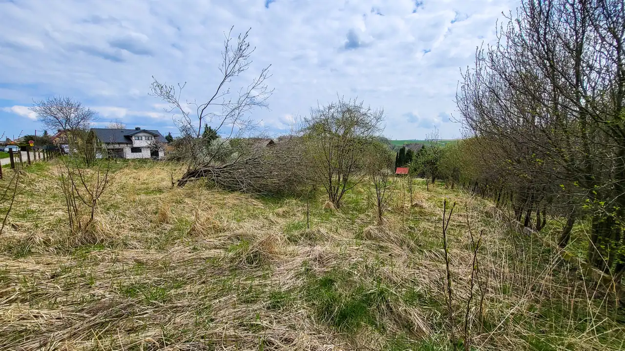 - Działka Niezagospodarowana, lekko nachylona, prostokąt